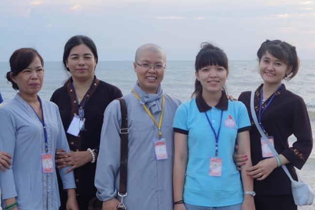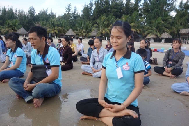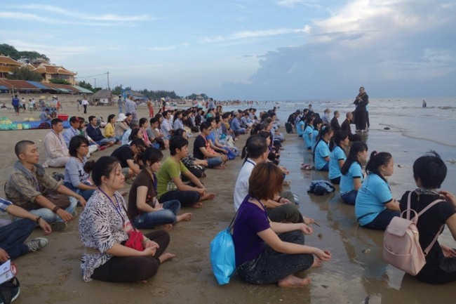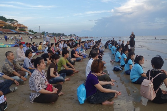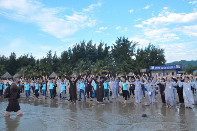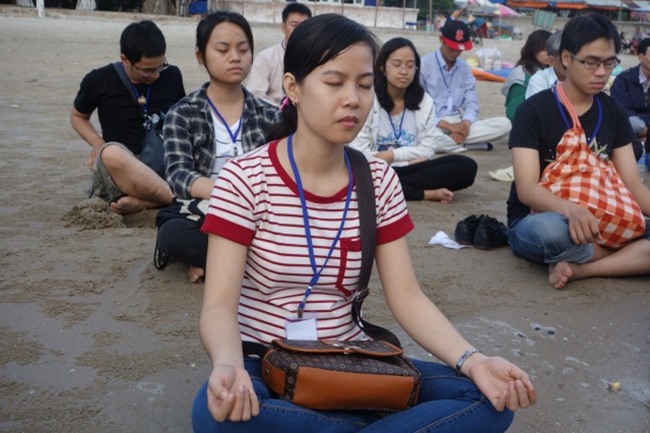 Vào buổi chiều, các bạn trẻ lại tiếp tục hành trình đến bãi biển Dinh Cô, Long Hải. Tại đây, các bạn trẻ được thầy Thích Ngộ An hướng dẫn thực tập thiền ngồi với chủ đề “Nhĩ căn viên thông”, đây là cơ hội tiếp nối năng lượng lắng nghe và thương yêu của đức Bồ tát Quán Thế Âm.