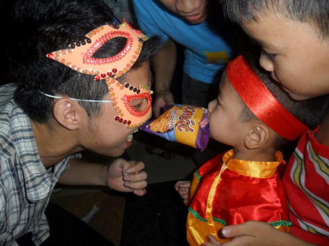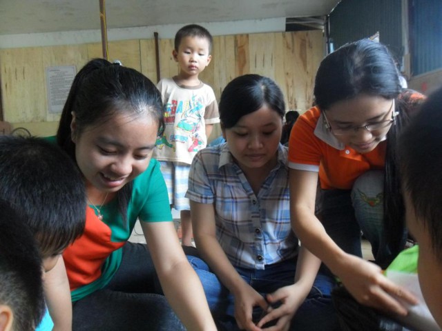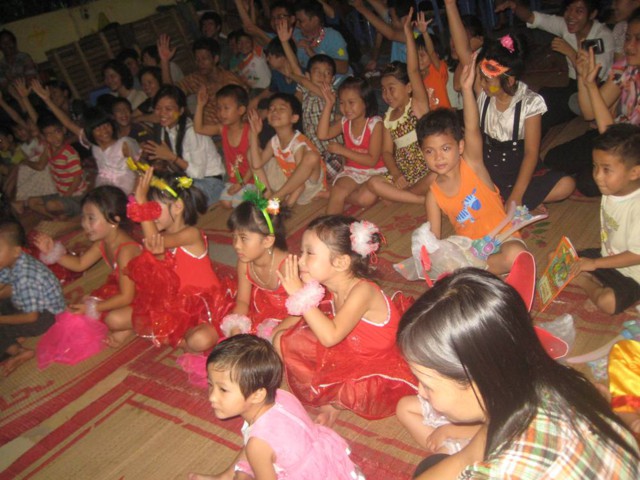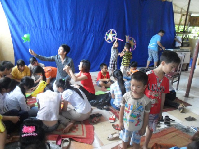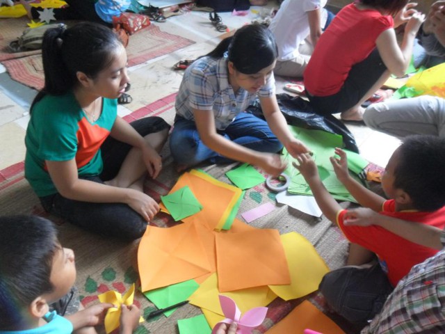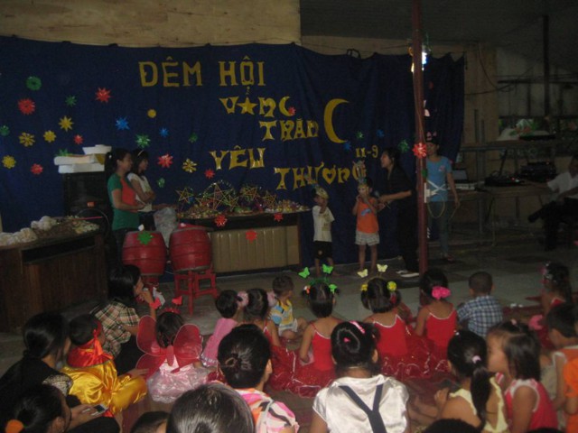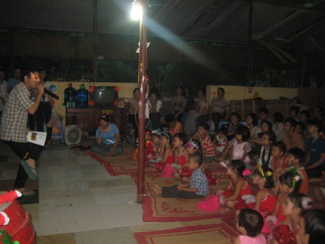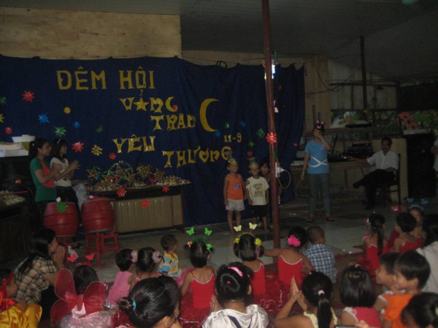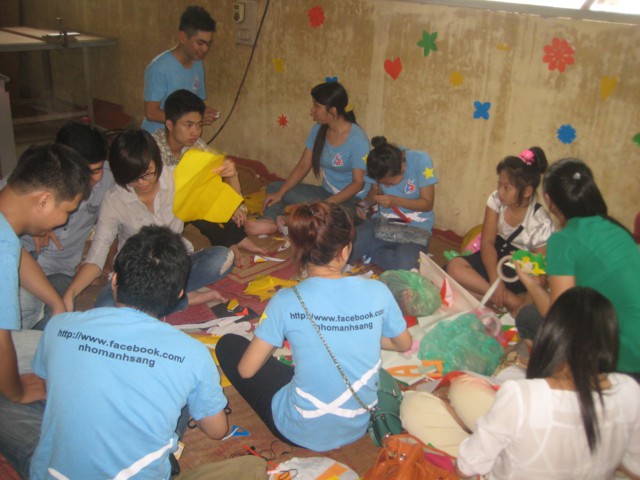 Hiểu được mong muốn đó, trong suốt một tuần qua các tình nguyện viên đã chuẩn bị hết sức công phu các phần quà ý nghĩa, để mang đến trung tâm một trung thu ấm tình người và đủ đầy với: đèn ông sao, bánh trung thu, mặt nạ, trái cây và những cuốn sách hay, phù hợp với lứa tuổi của các bạn nhỏ ở trung tâm… Ngay từ khi đến trung tâm, đội tình nguyện đã làm nóng không khí bằng liên khúc những bài hát thiếu nhi quen thuộc: “Trống cơm”, “Chú voi con ở bản đôn”, “Con cò bé bé”…, tiếp đến là một chuỗi các trò chơi tĩnh và động đã diễn ra suốt từ 3 giờ chiều đến 8 giờ tối: gấp hoa sen, làm chong chóng, cắt dán hình trang trí, thi hát các bài thiếu nhi, nhìn người miêu tả đoán tên hành động…
