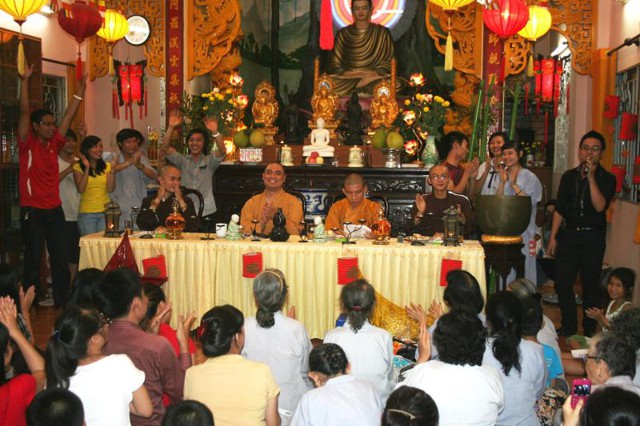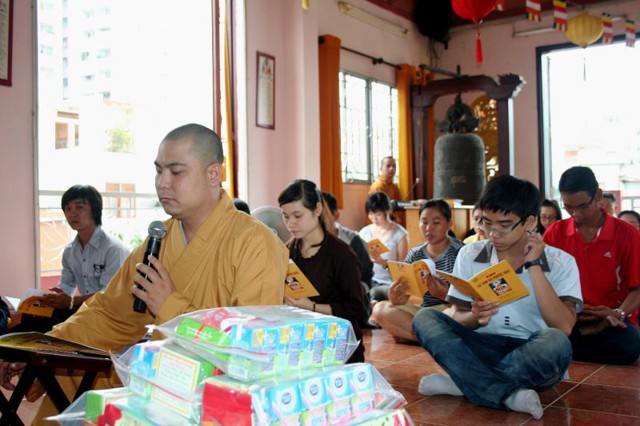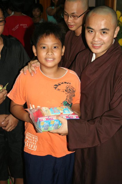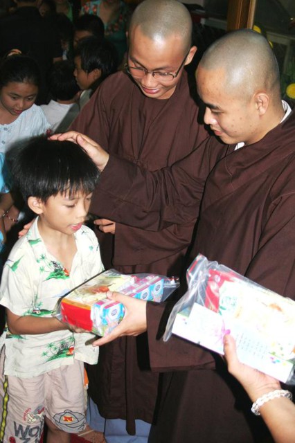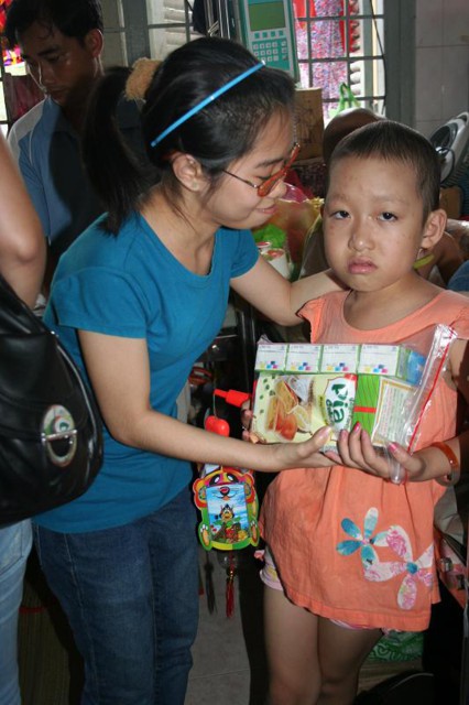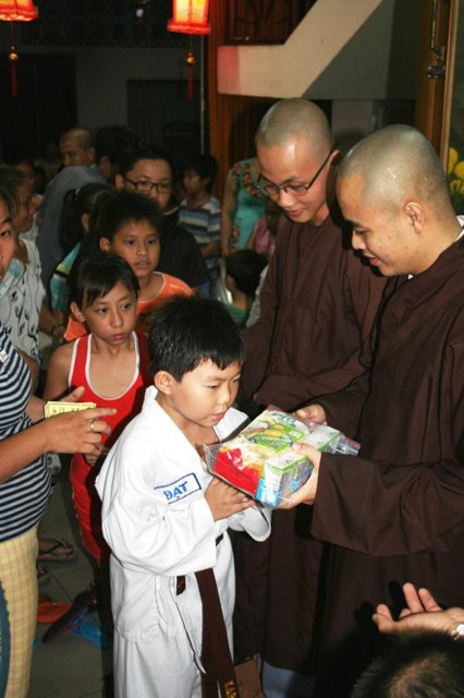 Chiều ngày 12/09/2011, hòa trong không khí tươi vui, đón mừng Tết Trung Thu, dưới sự hướng dẫn của ĐĐ. Thích Lệ Minh – Chủ nhiệm CLB.TNPG Q5, sau phần nghi lễ tụng kinh Từ tâm – Phước đức ; các em CLB. Thanh niên Phật giáo Q5 đã phát tặng 200 phần quà từ thiện cho các bệnh nhi ung thư máu tại Bệnh viện Ung bướu – Q.Bình Thạnh và 100 phần quà cho các em thiếu nhi chung quanh chùa Thiện Mỹ, đồng thời có buổi sinh hoạt văn nghệ, vui chơi trung thu tại bản tự thật ấm cúng vào buổi tối cùng ngày.