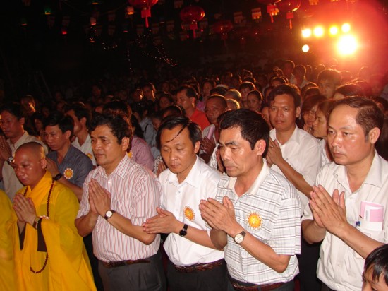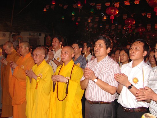 Quan khách chắp tay niệm Phật cầu gia hộ