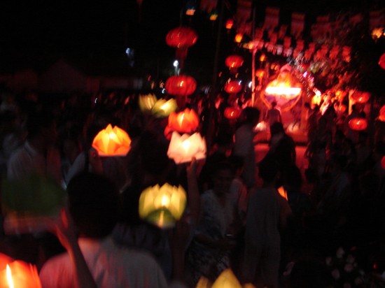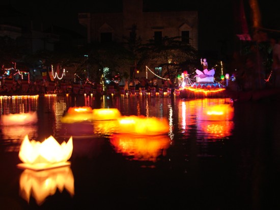 Lung linh hoa đăng. Người dân Xuân Canh và vùng lân cận đã có một đêm lễ hội Phật đản ấn tượng và đáng nhớ