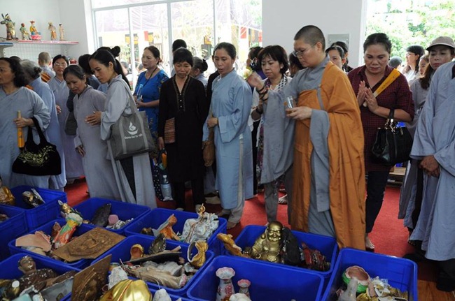 Và nhiều chùa đã vô hình chung trở thành nơi để cho tín đồ Phật tử đem đến “gửi” những loại “rác thải” tâm linh đó. Nhưng khổ nỗi là chùa ở các thành phố lớn không có không gian rộng rãi, không có nơi để lưu trữ các loại ấn phẩm, tranh tượng cũ nát ấy.