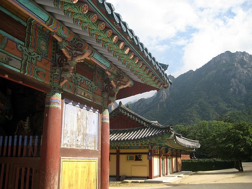 Ngôi chùa nhỏ nhưng có bề dầy về lịch sử, chỉ cần đi bộ một đoạn ngắn từ lối vào chính của công viên, đánh dấu sự bắt đầu của đường mòn lên núi Seoraksan và Gyejoam.