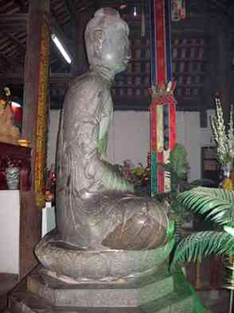 …Đi xa hơn một chút, rời xa con đường chính khoảng 9km về đến thôn Phật Tích, xã Phật Tích, huyện Tiên Du (bản thân những cái tên đã rất gợi, rất linh), sẽ gặp chùa Phật Tích. Phía trước sông Đuống trữ tình, phía sau núi Nguyệt Hằng nhấp nhô, chùa Phật Tích được coi là một “Đại danh lam” thời Lý. Đọc trên tấm bia của Chùa mới thấy, vào năm 1057, nhà Lý đã cho xây dựng ở đây một cây tháp cao mười trượng và một bức tượng mình vàng cao sáu thước. Qua thời gian, tháp đổ, tượng bong hết lớp vàng bên ngoài, lộ ra lớp bên trong bằng đá tuyệt đẹp, người ta đã xây dựng lại chùa như ngày nay.