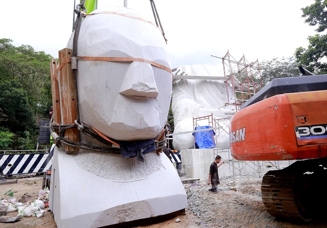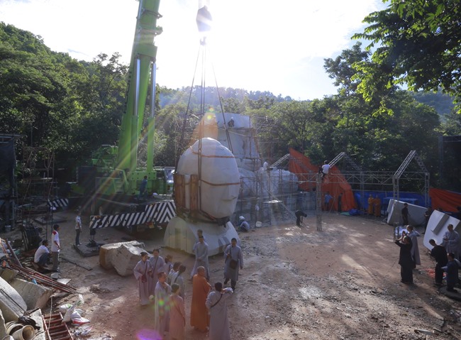 Và Thượng tọa Trụ trì đã dồn mọi tâm huyết, sức lực cùng với đội kỹ sư, các nghệ nhân điêu khắc đá, các đệ tử có tay nghề cao để hoàn thành những giai đoạn cơ bản nhất như: xin giấy phép, làm đường để chuyển đá, thiết kế mái che, chọn mẫu tượng, scan 3D, tìm nguồn kinh phí, v.v…