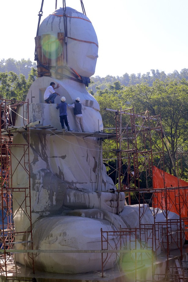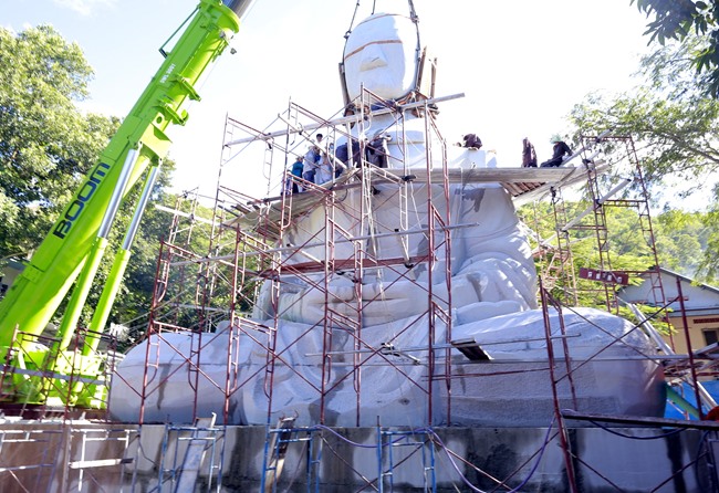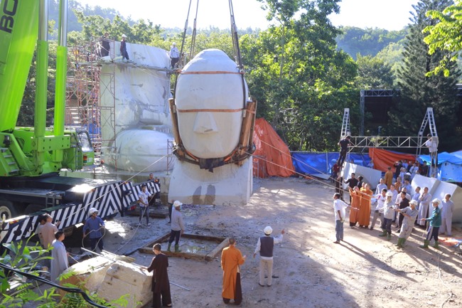 Đến sáng hôm sau, tức là ngày 01/10/2017, thực hiện công đoạn nâng lắp khối đầu có trọng lượng 78 tấn lên thân tượng Đức Phật Bổn Sư Thích Ca Mâu Ni cùng với hai bên thớt vai, mỗi thớt khoảng 12 tấn.