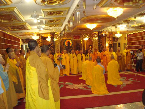Trong số 200 tăng ni có đầy đủ 14 đại lão hoà thượng mà vị đứng đầu là đại lão hoà thượng Thích Thắng Hoan.