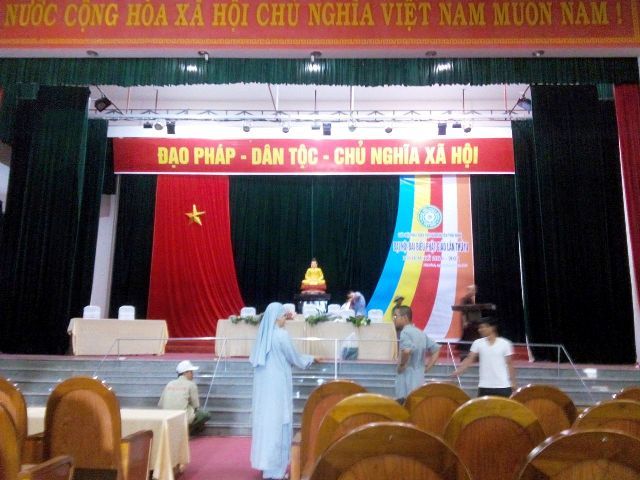 Một số hình ảnh chuẩn bị tổ chức đại hội Phật giáo huyện Phú Ninh tại Nhà Văn hóa huyện