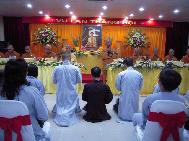 Đại diện đạo tràng đã dâng lời tác bạch cúng dường lên chư tôn đức Tăng và sau đó là nghi thức lễ Vu lan.
