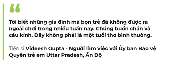 Nhiều trẻ em đang phải vật lộn để đối phó với việc bị “nhốt” ở nhà. “Tôi biết những gia đình mà bọn trẻ đã không được ra ngoài chơi trong nhiều tuần nay. Chúng buồn chán và cáu kỉnh. Đây không phải là một tuổi thơ bình thường. Nó đủ tồi tệ và đôi khi cha mẹ chỉ làm cho điều ấy tồi tệ hơn”, Tiến sĩ Videesh Gupta khẳng định.
