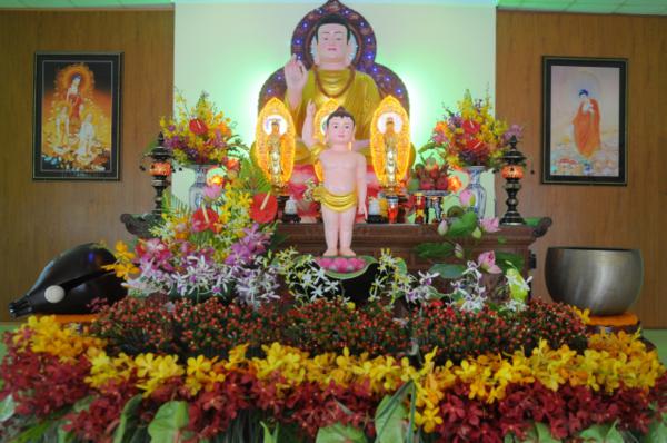 Trước khi lễ tắm Phật được cử hành, ĐĐ. Thích Thiện Xuân đã có buổi pháp thoại về ý nghĩa ngày đản sanh của Phật. Tiếp đó, ca sĩ Trung Hậu đã đến với bà con bằng những ca khúc nhạc Phật giáo ý nghĩa cùng sự giao lưu của ca sĩ đến bà con thắm tình đạo vị.