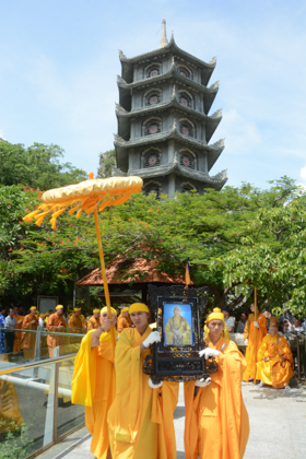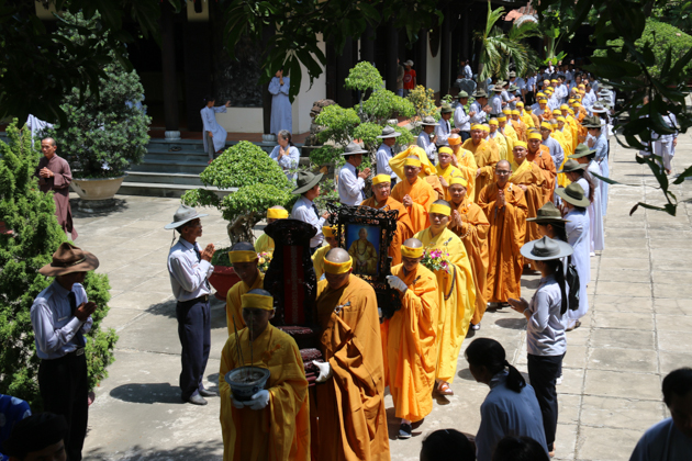 Đúng 8h00, BTC Tang lễ và môn đồ pháp quyến đã thành kính trang nghiêm cung thỉnh Di ảnh, Long vị, bát nhang Cố Hòa thượng Tân viên tịch Tham Phật Yết Tổ tại Tổ đình Chúc Thánh (Tp Hội An), Tổ đình Linh Ứng Ngũ Hành Sơn và thăm văn phòng BTS GHPGVN Tp Đà Nẵng (chùa Pháp Lâm, Tp Đà Nẵng).