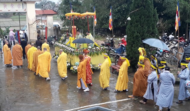 Phần nghi lễ do ĐĐ.Thích Như Giáo, Chứng minh BTS PG huyện Đại Lộc cùng chư tôn đức trong ban kinh sư thực hiện, với âm thanh trầm hùng của nhạc lễ, ban khánh tiết và môn đồ pháp quyến đã cung thỉnh di ảnh, long vị, y bát của cố Thượng tọa từ chùa Linh Sơn (xã Đại Nghĩa) về tổ đình Cổ Lâm (xã Đại Đồng) để bạch Phật, triệu Tổ…