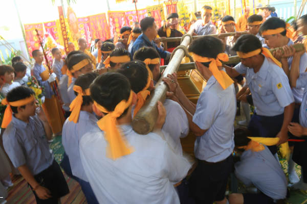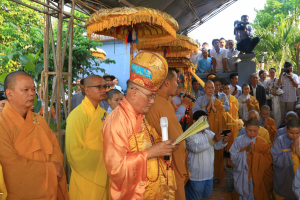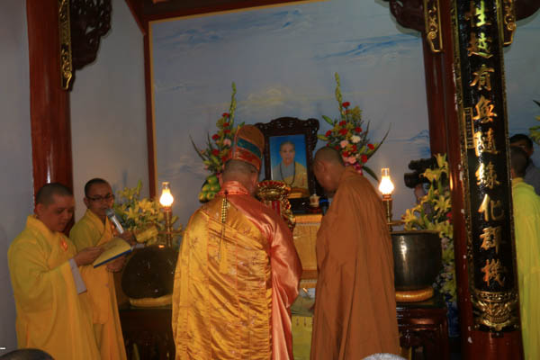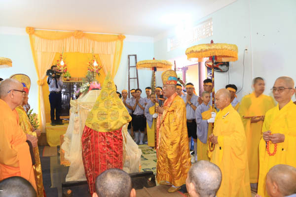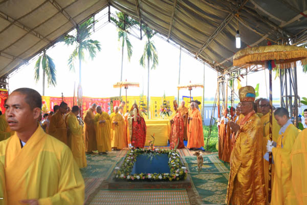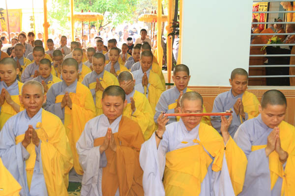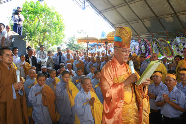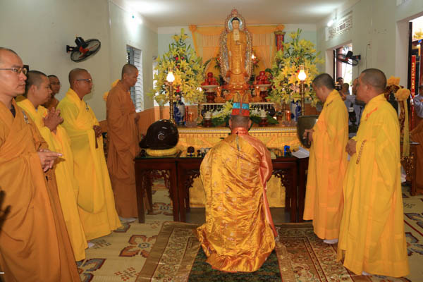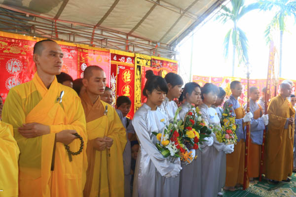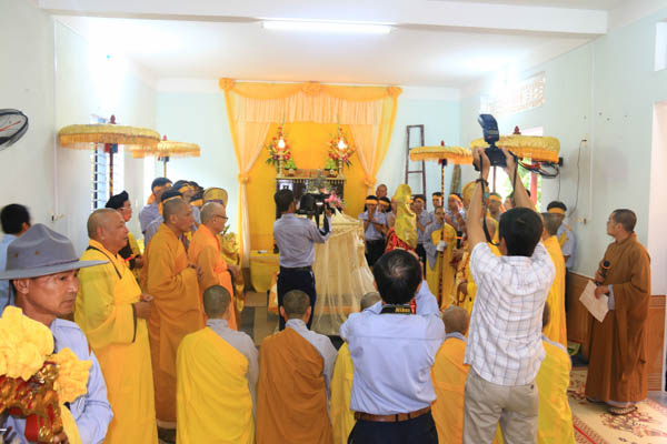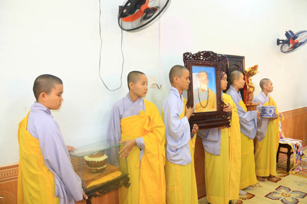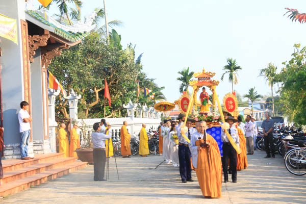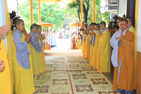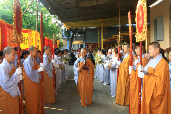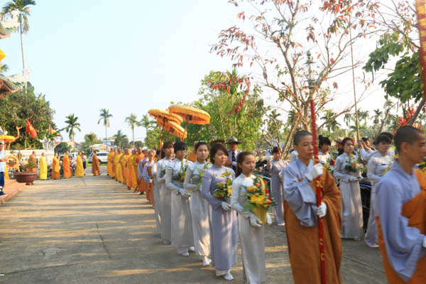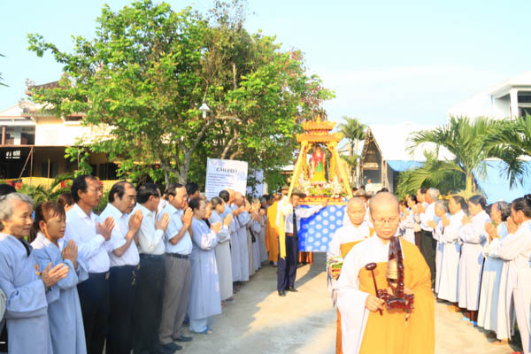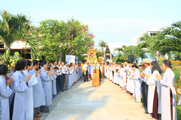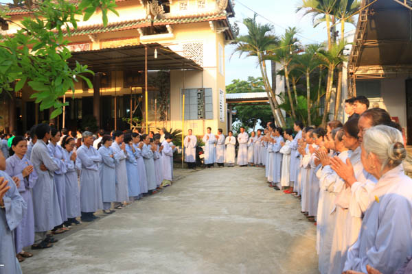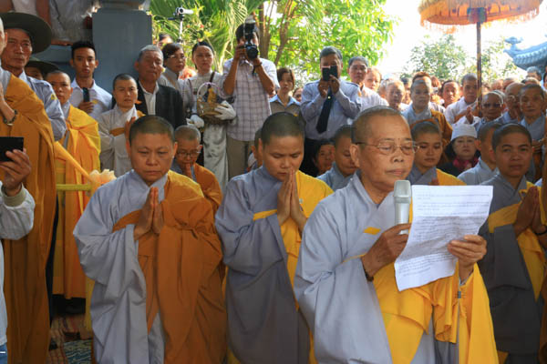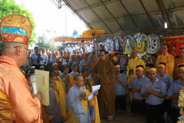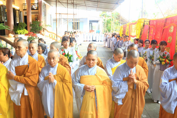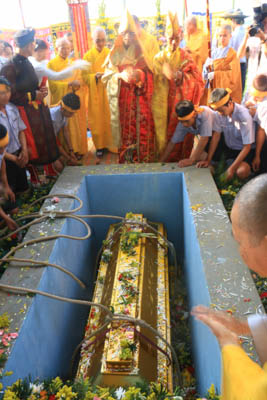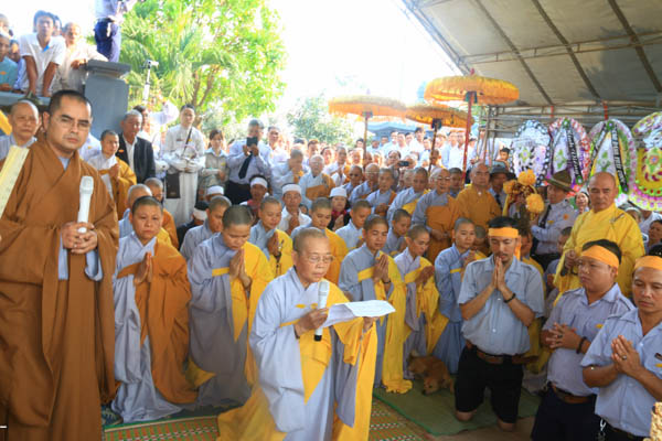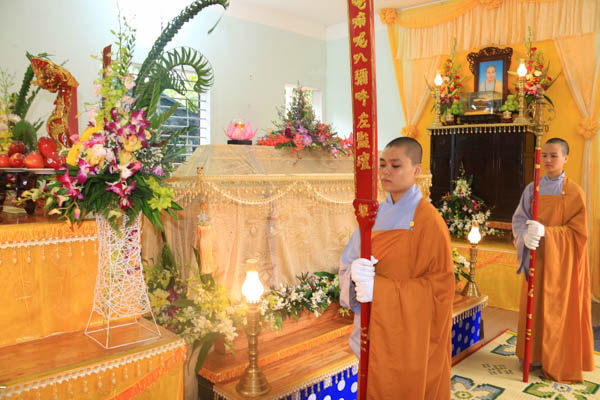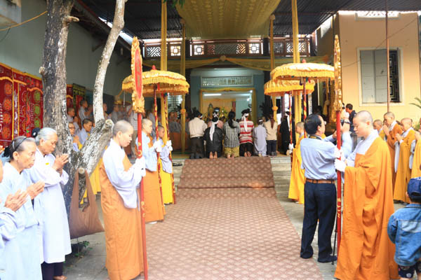 Đúng 7h30, HT. Thích Trí Viên – Trưởng BTS GHPGVN quận Sơn Trà Tp Đà Nẵng – Sám chủ Tang lễ; TT. Thích Đồng Mẫn – Đệ nhất chấp lệnh; TT. Thích Như Giáo – Đệ nhị chấp lệnh cùng Chư Đại đức Ban kinh sư đã tiến hành nghi lễ phụng tống kim quan Cố Ni trưởng nhập bảo tháp tại khuôn viên chùa Châu Phong trong tiếng tụng kinh hộ niệm của Chư Tôn đức Tăng Ni và đạo hữu Phật tử. Hoa tiễn biệt được rãi dọc theo con đường dẫn vào ngôi bảo tháp và phủ đầy kim quan cố Ni trưởng.