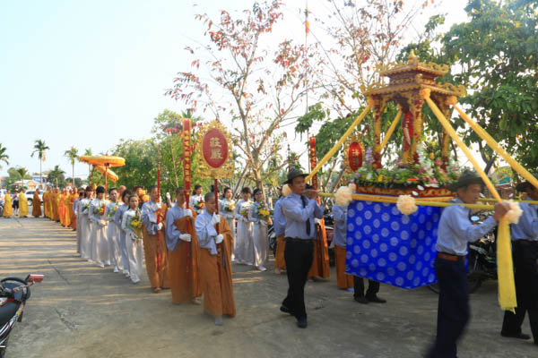 Tiết đầu xuân trăm hoa đua nở khoe sắc, nhưng nơi đây dù hoa vẫn nở rợp sân chùa nhưng khung cảnh lại mang một nỗi buồn sâu lắng. Chư tôn đức Tăng Ni và đạo hữu Phật tử về đây để tiễn đưa Cố Ni trưởng Thích Nữ Hạnh Nguyện, bậc trưởng thượng của Châu Phong Ni tự nhập bảo tháp.