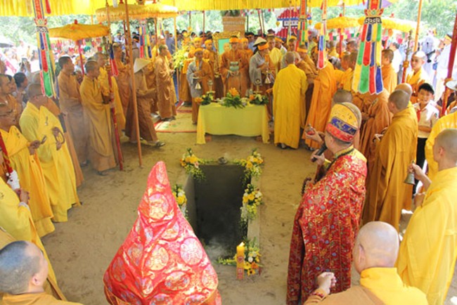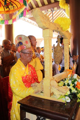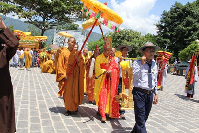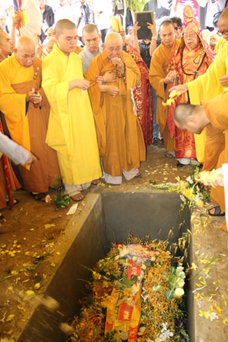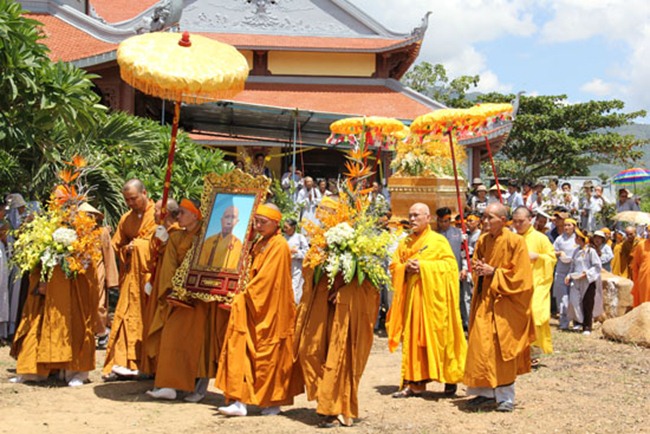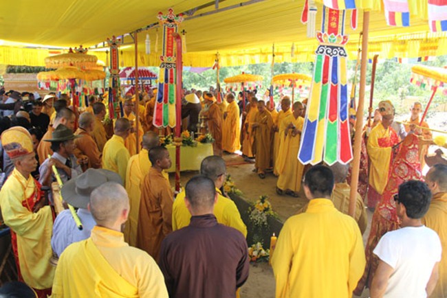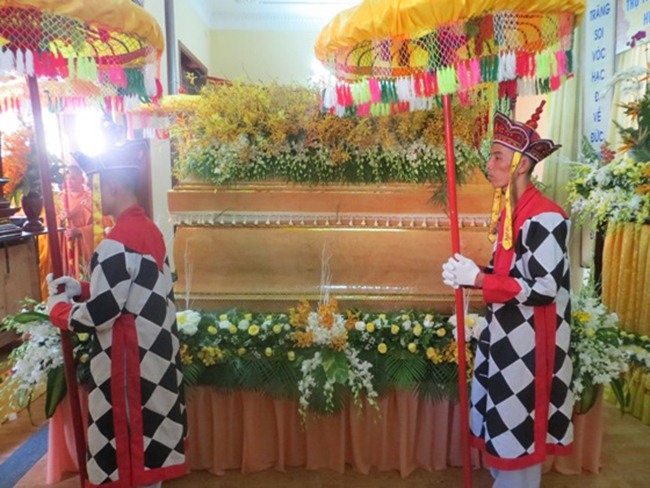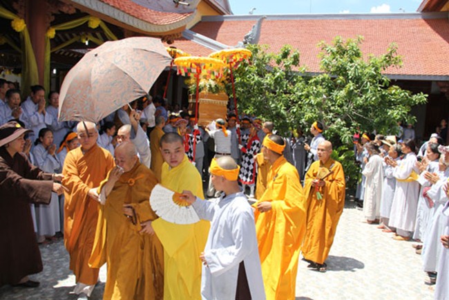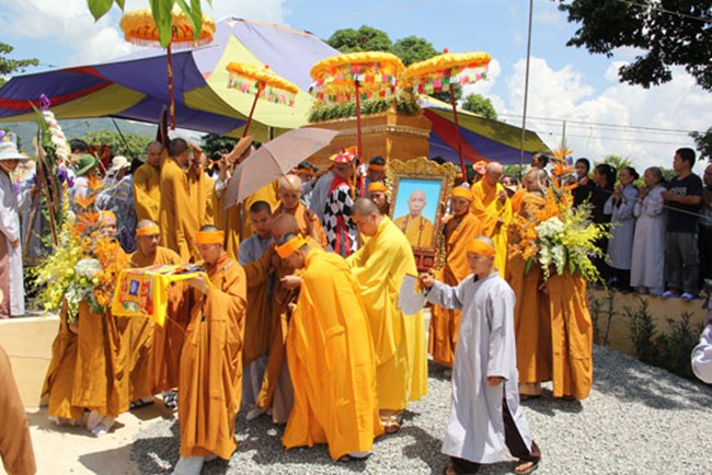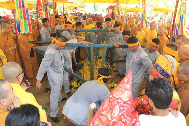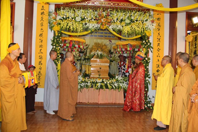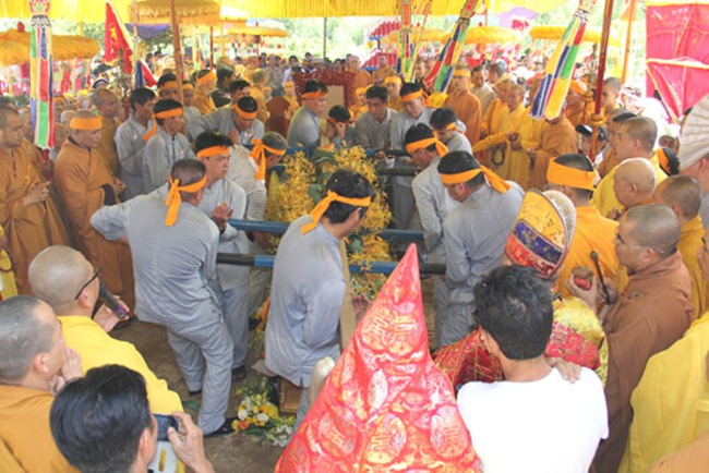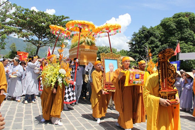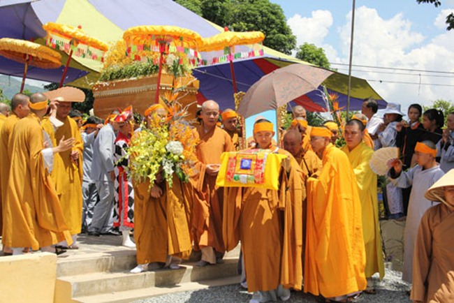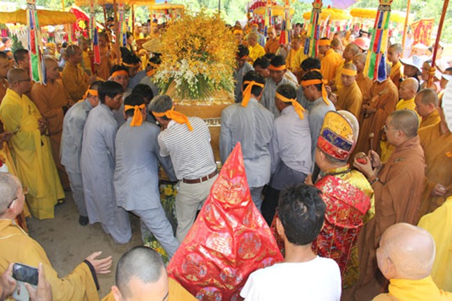 Được biết, sau một đoạn đường dài hơn 1000km, BTC tang lễ đã phụng tống kim quan cố Hòa thượng từ chùa Bửu Đà (Tp.HCM) về yết Tổ tại Tổ đình Chúc Thánh (TP.Hội An) và an trí tại đất tổ quê hương Tổ đình Cổ Lâm (xã Đại Hồng, huyện Đại Lộc).