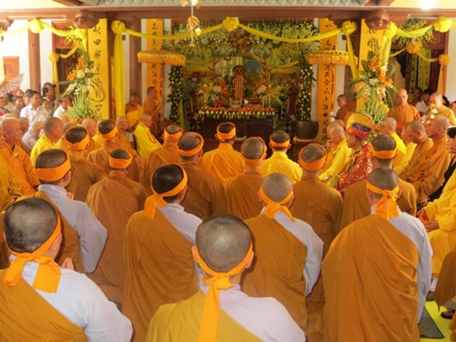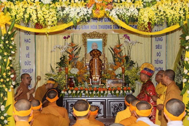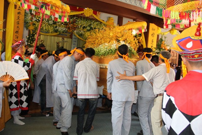 Sau khi lễ tưởng niệm là lễ cung tống kim quan cố Hòa thượng được chư tôn đức thực hiện trang nghiêm theo nghi thức truyền thống trong niềm tiếc thương vô hạn.