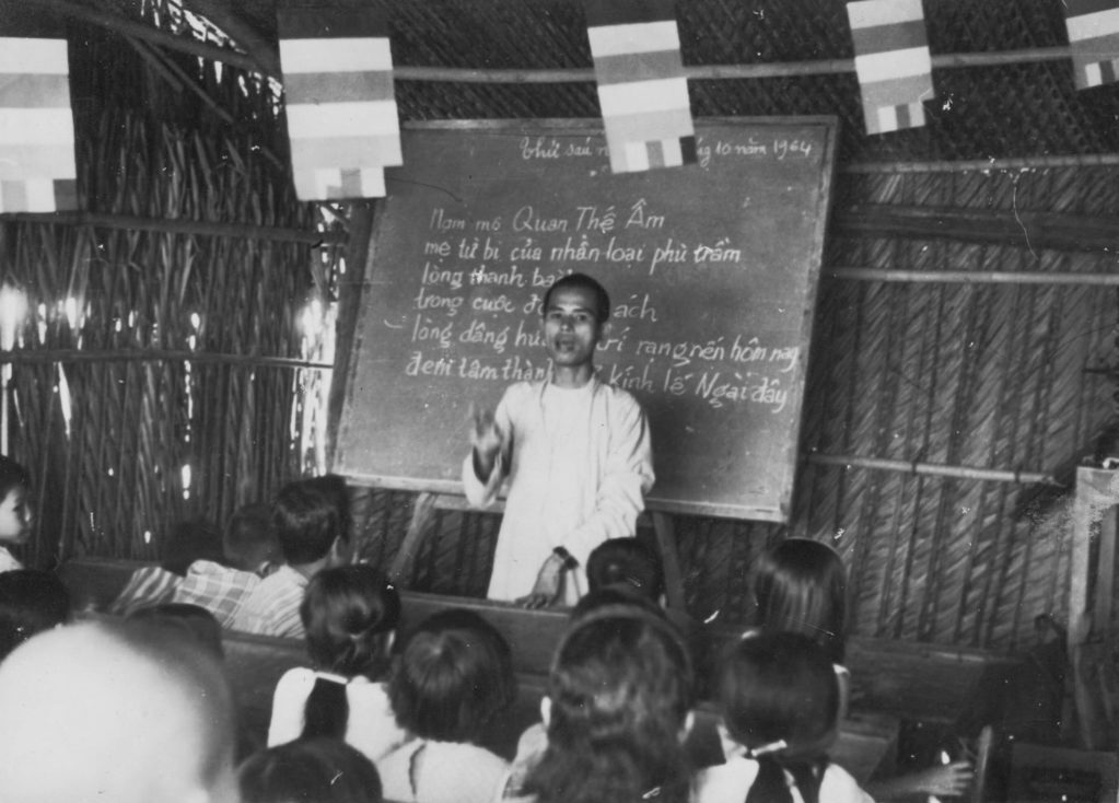 Thiền sư Thích Nhật Hạnh dạy trẻ em đọc và viết bằng một bài hát về Bồ Tát, năm 1964.