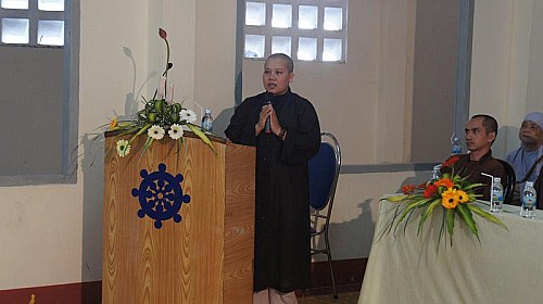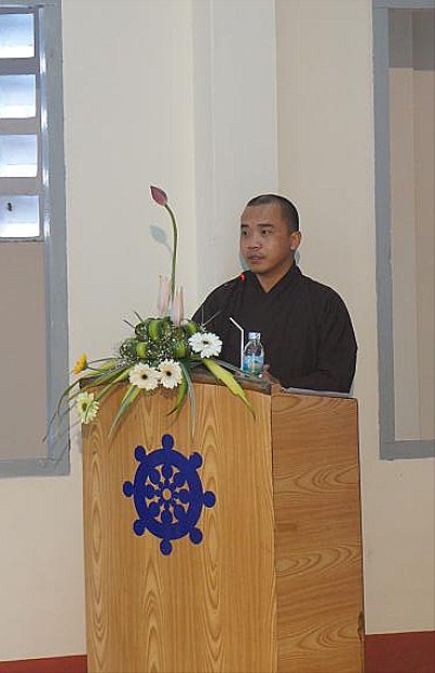 ĐĐ Đức Châu trưởng đoàn đã chia sẻ định hướng du học các nước đến với toàn thể tăng ni sinh, cũng như kinh nghiệm du học tại ấn độ. Tiếp đó, ĐĐ Long Bình đã chia sẻ kinh nghiệm tham gia các công tác xã hội như: từ thiện xã hội, công tác phòng chống HIV, vv..vv… Thầy cho rằng TN trẻ chưa thực sự xứng tầm với nguồn giáo pháp vĩ đại của đức phật, do đó bên cạnh rèn luyện các kĩ năng tu học, TN cần nên bồi dưỡng và cập nhật thêm các kĩ năng xã hội, áp dụng giáo lý nhà phật và công cuộc hòang hóa độ sinh.