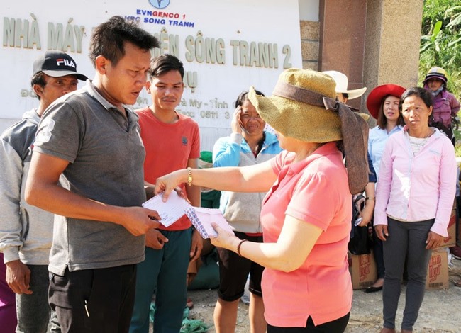 Mỗi phần quà trị giá 250 nghìn đồng, bao gồm các nhu yếu phẩm và phong bì tiền mặt. Tổng trị giá 120 triệu đồng. Dịp này, phái đoàn còn đến thăm hỏi, động viên và hỗ trợ 50 triệu đồng cho những gia đình có nạn nhân tử vong và nhà sụp do sạt lỡ đất vừa qua.