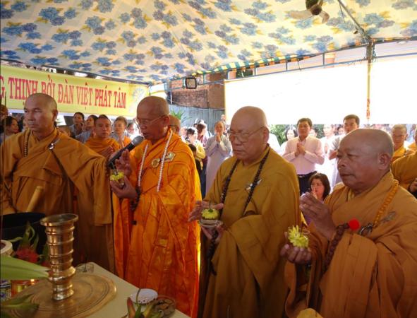 Buổi lễ diễn ra với sự chứng minh và chú nguyện có: HT. Thích Huệ Tâm- Trưởng Ban Hướng Dẫn GĐPT tỉnh Đồng Nai, Chánh BĐD PG thị xã Long Khánh; HT. Thích Nhật Khánh- Phó BĐD thị xã Long Khánh; HT. Thích Trừng Chỉ – Ủy viên BTS PG Đồng Nai, Chánh Ban Đại Diện PG huyện Cẩm Mỹ; TT. Thích Tâm Hiếu- Phó BĐD Phật giáo huyện Cẩm Mỹ; TT. Thích Nguyên Thiết- Phó BĐD Phật giáo huyện Cẩm Mỹ cùng các cấp lãnh đạo chính quyền địa phương và hàng ngàn thiện nam tín nữ Phật tử xa gần tham dự.