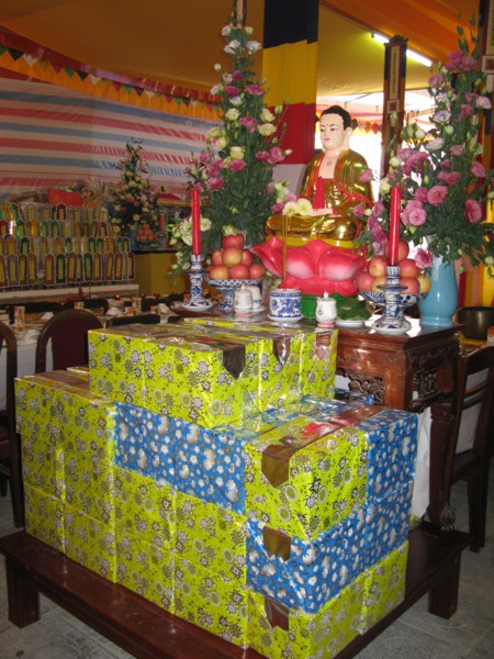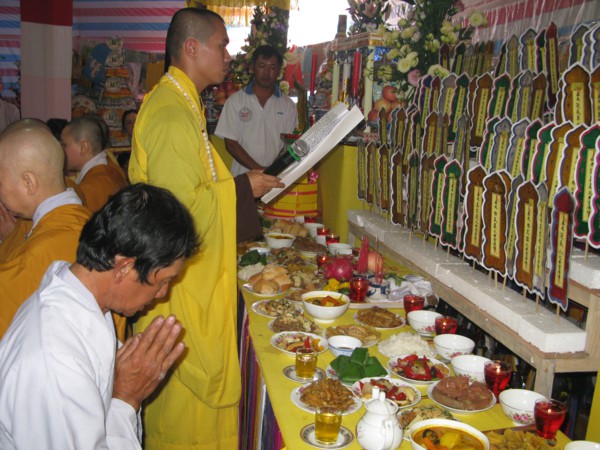 Xuất phát từ ý nghĩa thiêng liêng cao cả ấy, sáng hôm nay 10/5/2012 ( nhằm ngày 20 tháng 4 Nhâm Thìn ) gia đình phật tử Nguyễn Trung Loan pháp danh Hạnh Thiện, Nguyễn Thị Lộc pháp danh Diệu Liên . Sau gần 60 năm xa quê hương, tha phương cầu thực , nay đã tìm được cội nguồn tiên tổ đã thành tâm thiết lễ cúng dường trai tăng, cầu siêu an vị, truy tiến Nội Ngoại chư tiên linh hai họ Nguyễn – Bạch và thiết lễ Trai Đàn Bạt Độ, Chẩn Tế Âm Linh Cô Hồn cầu nguyện âm siêu, dương thái tại tư gia số 3/5 đường Trần Phú, phường 4 TP Đà Lạt .