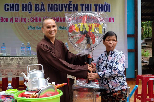 Được biết hộ bà Nguyễn Thị Thời là hộ nghèo neo đơn tại địa phương, kinh phí hỗ trợ là 50 triệu đồng do chùa Tân Thành và chùa Pháp Hoa Sơn tài trợ nhằm chia sẻ những khó khăn cùng gia đình, giúp gia đình bà Thời có nơi ở an toàn trong mùa mưa bão.