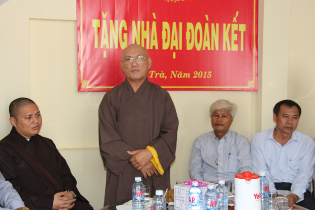 HT. Thích Trí Viên đã phát biểu chúc mừng gia đình ông Dương đồng thời mong muốn gia đình từ nay cố gắng phấn đấu, chăm lo làm ăn để ổn định cuộc sống, thực hiện tốt chính sách của Đảng và nhà nước, đồng thời đóng góp cùng địa phương để hổ trợ những hoàn cảnh khó khăn khác.