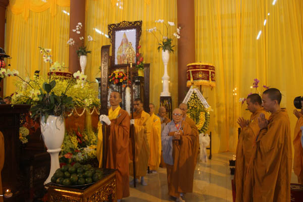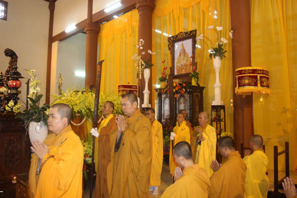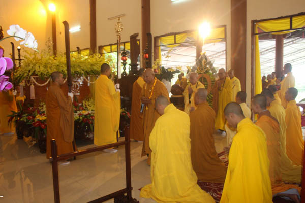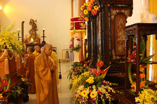Đúng 8h00, lễ viếng bắt đầu. Phái đoàn Ban trị sự GHPGVN Tp Đà Nẵng do HT. Thích Thiện Nguyện – UVTT HĐTS GHPGVN, Quyền trưởng BTS GHPGVN Tp Đà Nẵng dẫn đầu đã vào viếng và thọ tang Cố trưởng lão Hòa thượng tân viên tịch. Tháp tùng cùng phái đoàn có Chư Tôn Hòa thượng, Thượng tọa, Đại đức Tăng Ni Ban trị sự.
