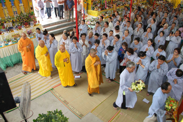 Buổi lễ dưới sự chứng minh của HT. Thích Như Thọ – Thành viên HĐCM GHPGVN, CM BTS GHPGVN Tp Đà Nẵng; HT. Thích Giải Trọng – Tọa chủ Tổ đình Long Tuyền, Hội An.