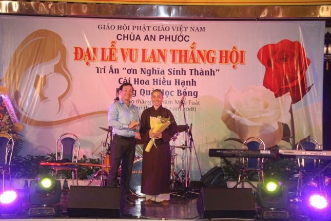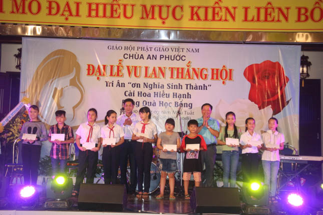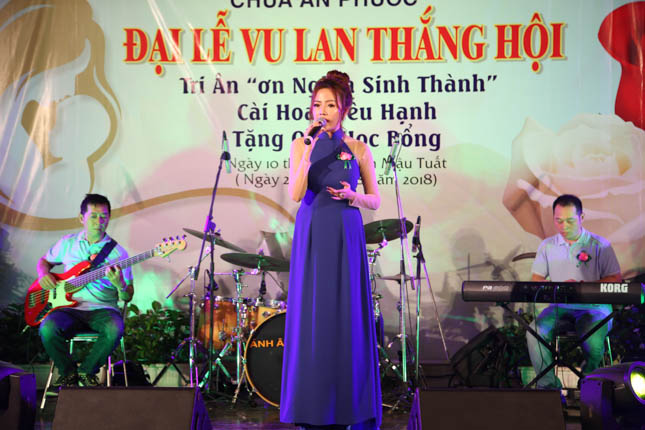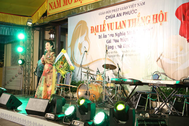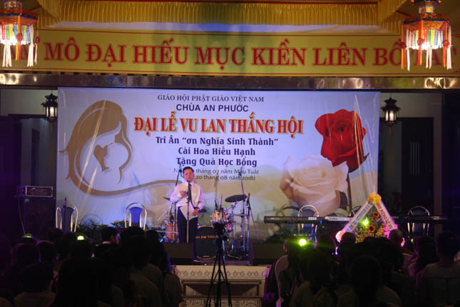 Ngay sau buổi trao tặng học bổng là đêm văn nghệ mừng Vu Lan với chủ đề “Ơn nghĩa sinh thành” do các ca sĩ, nghệ sĩ đến từ Tp Hồ Chí Minh tham gia biểu diễn.