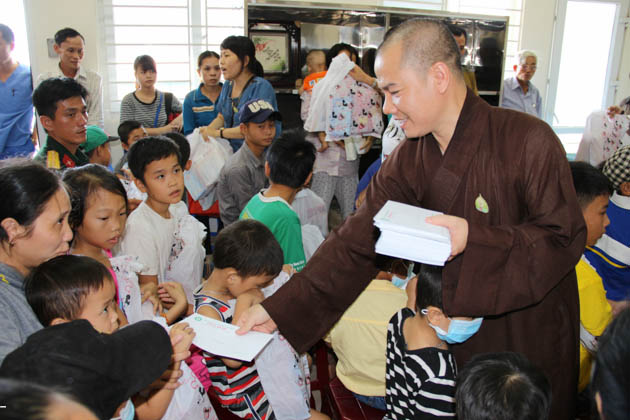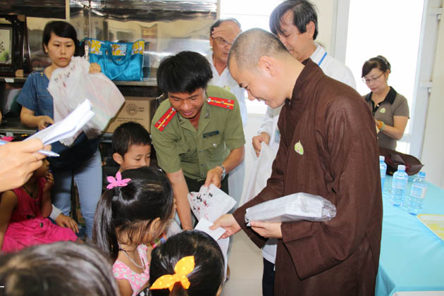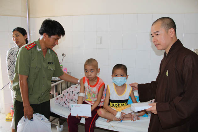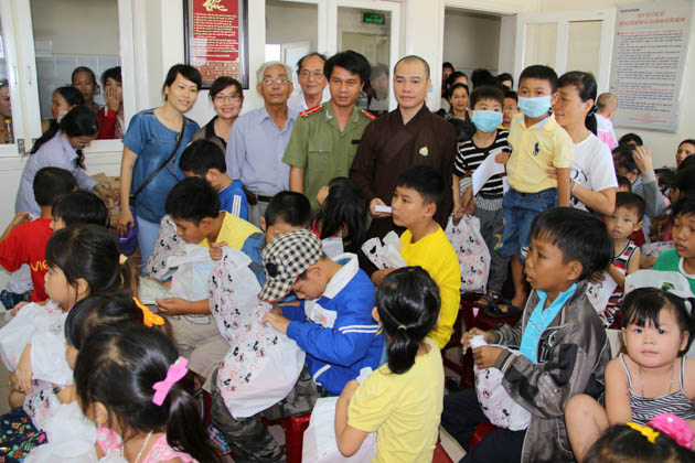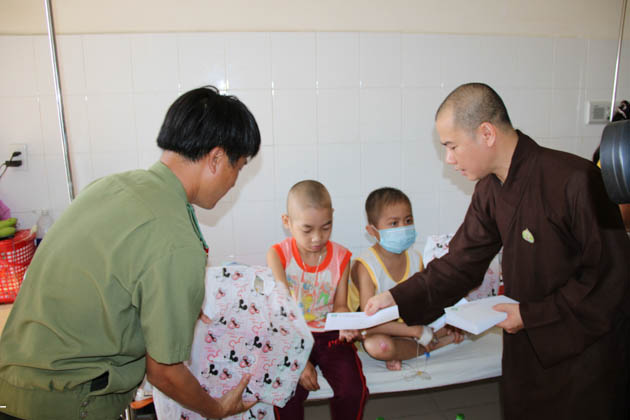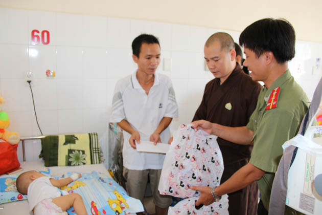 Đoàn cũng đã đến thăm và tặng quà trị giá 10 triệu đồng cho các cháu mồ côi đang được nuôi dưỡng tại chùa Quang Châu (xã Hòa Châu, huyện Hòa Vang, Tp Đà Nẵng).