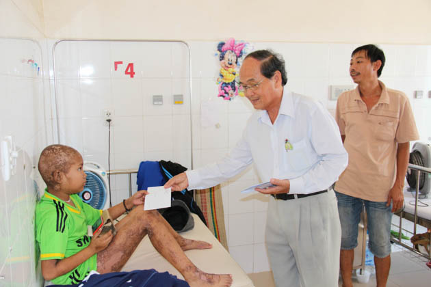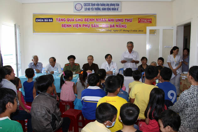 Tại Bệnh viện Phụ sản nhi Tp Đà Nẵng, đoàn đã trao tặng 100 suất quà bao gồm bánh kẹo và tiền mặt trị giá 600.000đ/ suất cho các bệnh nhi ung thư đồng thời trao tặng thêm 2 suất quà cho 2 bệnh nhi bệnh nặng tại khoa hồi sức cấp cứu có hoàn cảnh khó khăn.