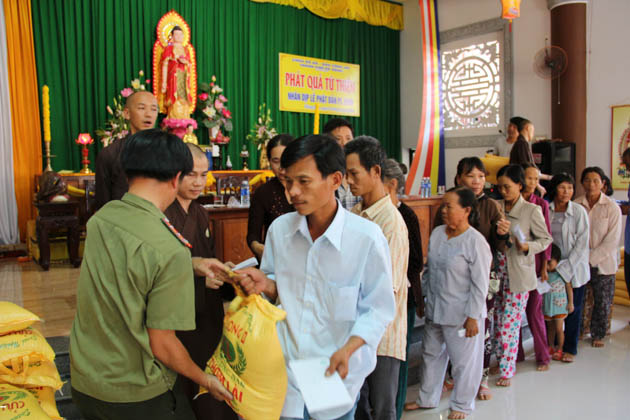 Kỷ niệm ngày Khánh đản của Đức Bổn sư Thích Ca Mâu Ni PL.2559 – DL.2015, nằm trong chương trình hoạt động “Tuần lễ Phật Đản” của chùa Bà Đa đồng thời hướng đến ngày Quốc Tế thiếu nhi 1/6, ngày 27/5/2015 (10/4/Ất Mùi), ĐĐ. Thích Thông Đạo – UV HĐTS GHPGVN, Phó ban kiêm Chánh thư ký BTS GHPGVN Tp Đà Nẵng, Trú trì chùa Bà Đa cùng Tăng chúng, đạo hữu Phật tử chùa Bà Đa đã phối hợp với báo Công an Tp Đà Nẵng thực hiện chuyến công tác từ thiện tặng quà cho trẻ em và đồng bào có hoàn cảnh khó khăn với tổng số tiền 200 triệu đồng.