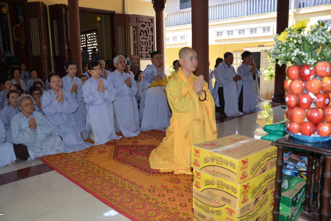 Sau lời tác bạch của ĐĐ. Thích Thông Đạo, Tăng chúng và Ban hộ tự, đạo hữu Phật tử chùa Bà Đa đã cúng dường tịnh tài, tịnh vật dâng lên Chư Tăng đang an cư kiết hạ tại trường hạ Phổ Đà.