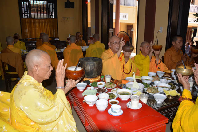 Với những ý nghĩa quan trọng và thiết thực đó, sáng ngày 14/6/2015 (28/4/Ất Mùi), Tăng chúng và Ban hộ tự, đạo hữu Phật tử chùa Bà Đa (P.Mỹ An, Q. Ngũ Hành Sơn, Tp Đà Nẵng) do ĐĐ. Thích Thông Đạo – UVHĐTS GHPGVN, Phó ban kiêm Chánh thư ký BTS GHPGVN Tp Đà Nẵng, Trú trì chùa Bà Đa hướng dẫn đã đến cúng dường an cư tại trường hạ Phổ Đà (340, Phan Châu Trinh, Tp Đà Nẵng).