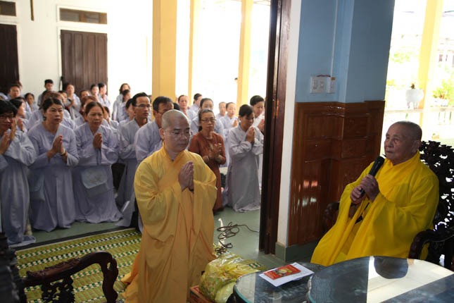 Đoàn do ĐĐ. Thích Thông Đạo – Ủy viên HĐTS GHPGVN, Phó trưởng ban kiêm Chánh thư ký BTS GHPGVN Tp Đà Nẵng, Trú trì chùa Bà Đa hướng dẫn với gần 200 đạo hữu Phật tử xuất phát lúc 6h00 sáng đến chùa Đạo Nguyên (Tp Tam Kỳ, tỉnh Quảng Nam) đảnh lễ, vấn an Đại lão Hòa thượng Thích Thiện Duyên – Phó Pháp chủ GHPGVN.