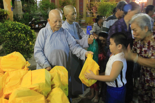 Ni trưởng Thích Nữ Diệu Cảnh – UV HĐTS GHPGVN, Trưởng phân ban đặc trách Ni giới GHPGVN Tp Đà Nẵng, Trú trì chùa Bảo Quang cùng Ni chúng tại chùa đã tổ chức trao tặng 150 phần quà trung thucho các cháu thiếu nhi tại địa phương.