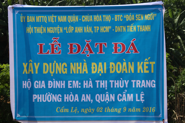 Trong buổi khởi công hôm nay, ĐĐ. Thích Hải Trí cùng Ban tổ chức chương trình Đóa sen ngời, các nhà hảo tâm đã trao tặng 250 triệu đồng cho 4 hộ gia đình: hộ ông Phan Hữu Dũng ở tại Tổ 5, P.Hòa Thọ Đông, Q.Cẩm Lệ, Tp ĐN (Chùa Hòa Thọ và BTC ĐÓA SEN NGỜI hỗ trợ 50 triệu đồng); hộ bà Nguyễn Thị Trà My ở tại Tổ 5A, P. Hòa Thọ Tây, Q.Cẩm Lệ, Tp Đà Nẵng (Chùa Hòa Thọ và BTC ĐÓA SEN NGỜI hỗ trợ 50 triệu đồng); sửa chữa nhà bà Trần Thị Ánh Tuyết ở tại 162/1 Lê Trọng Tấn, Tổ 29A, P.Hòa Phát, Q.Cẩm Lệ, ĐN (BTC ĐÓA SEN NGỜI – Hội thiện nguyện PHÁT TÂM ĐỨC hỗ trợ 50 triệu đồng) và hộ 4 em nhỏ mồ côi cha mẹ ở tại P. Hòa An, Q.Cẩm Lệ, Tp ĐN (BTC ĐÓA SEN NGỜI – Hội thiện nguyện LỚP ANH VĂN – TP HCM – Doanh nghiệp tư nhân TIẾN THANH -Q.Cẩm Lệ, TPĐN hỗ trợ 100 triệu đồng).