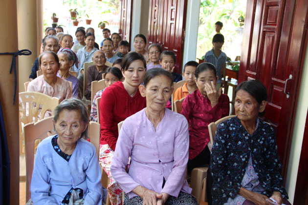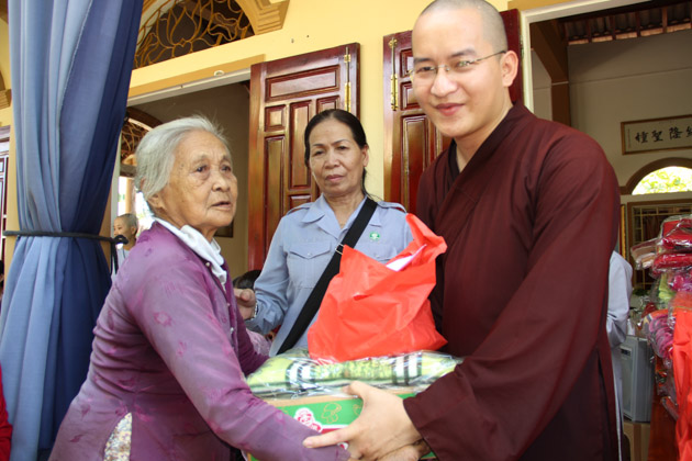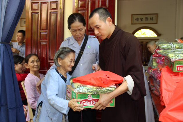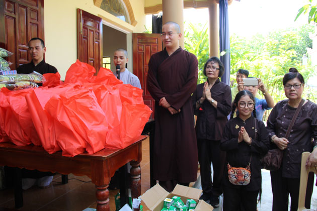 Tiếp sau đó, đoàn đã đến chùa Pháp Đàn (xã Tam Đại, huyện Phú Ninh, tỉnh Quảng Nam) trao tặng 50 suất quà trị giá 350.000đ/suất cho các cụ già có hoàn cảnh khó khăn tại xã.