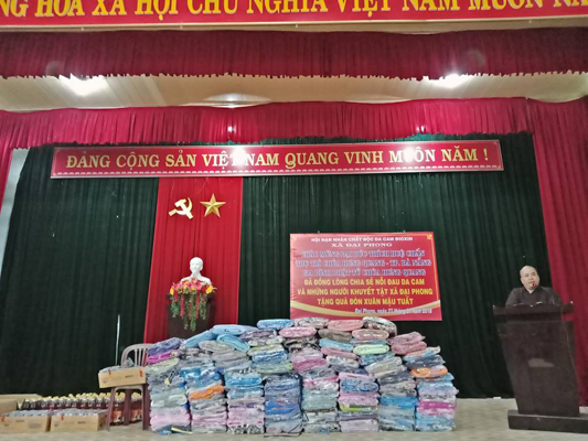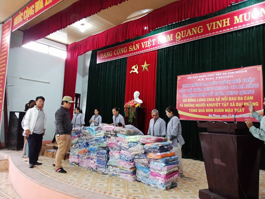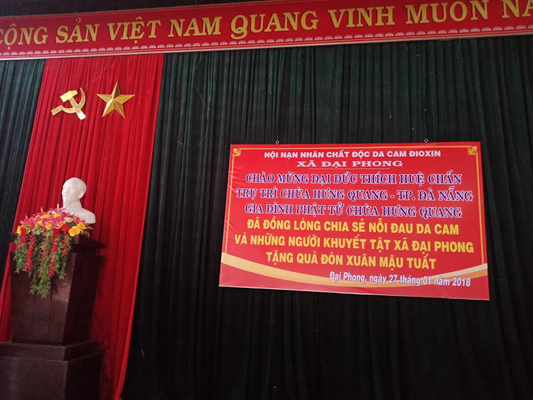 Đoàn do ĐĐ. Thích Huệ Chấn – UVTT BTS GHPGVN Tp Đà Nẵng, Trưởng BTS GHPGVN huyện Hòa Vang, Trú trì chùa Hưng Quang hướng dẫn đã đến thăm trao tặng 125 suất quà tết cho các nạn nhân chất độc da cam và người khuyết tật tại xã Đại Phong, huyện Đại Lộc, tỉnh Quảng Nam với tổng trị giá 50 triệu đồng.