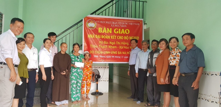 Nhân kỷ niệm 38 năm ngày thành lập Giáo hội Phật giáo Việt Nam (7/11/1981 – 7/11/2019) và hướng tới kỷ niệm 89 năm Ngày truyền thống Mặt trận Tổ quốc Việt Nam (18/11/1930 – 18/11/2019), Chùa Linh Ứng – Bà Nà cùng với Ban Dân Vận, Ủy ban Mặt trận Tổ quốc Việt Nam, phòng Lao động – Thương binh – Xã hội huyện Hoà Vang cùng Đảng ủy, Hội đồng nhân dân, Ủy ban nhân dân, Ủy ban Mặt trận Tổ quốc Việt Nam xã Hòa Nhơn và Ban công tác Mặt trận thôn Thạch Nham đã trao tặng căn nhà tình thương cho bà Ngô Thị Hồng vào ngày 6/11/2019.