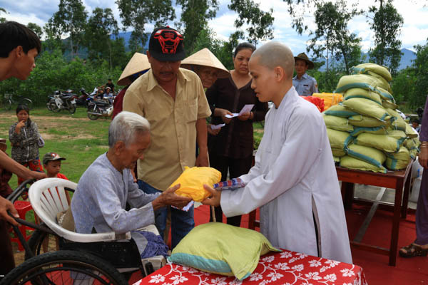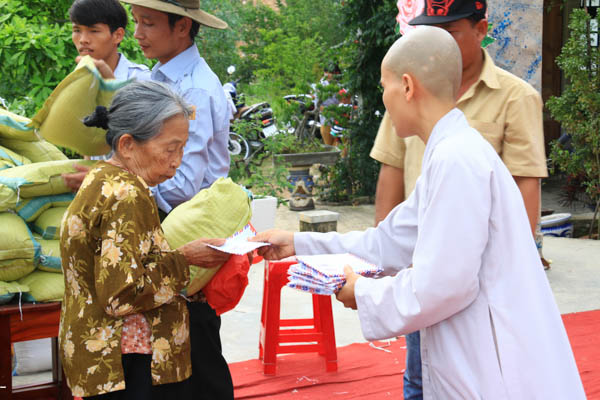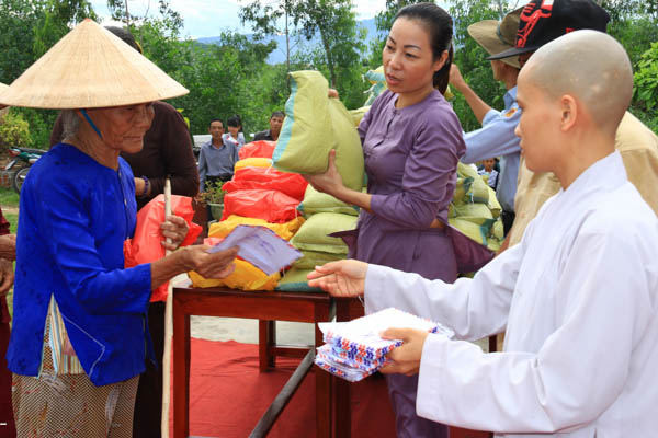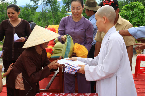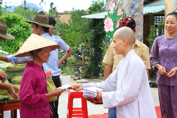 Khó khăn là vậy, nhưng tấm lòng của Sư cô trú trì vẫn tràn đầy tinh thần từ bi của người con Phật. Dù đau đáu về kinh phí xây dựng ngôi Tổ đường, nhưng những dịp đại lễ, Sư cô đều nghĩ về các đồng bào đang còn khó khăn, bệnh tật. Và 100 phần quà với tổng trị giá 20 triệu đồng đã được Sư cô Thích Nữ Thanh Hoàng trao tặng đến với đồng bào trong dịp Đại lễ Vu Lan với sự hổ trợ đóng góp của các đạo hữu Phật tử, các mạnh thường quân trong và ngoài nước.