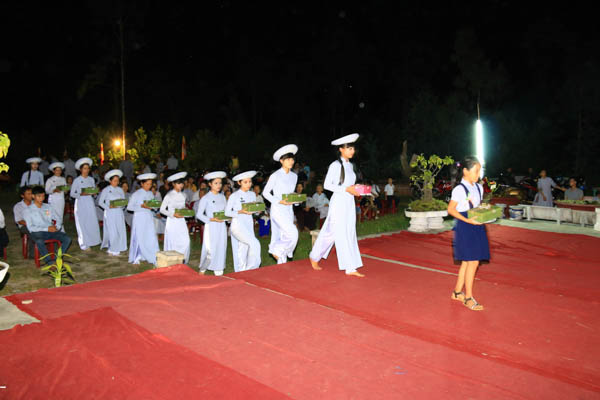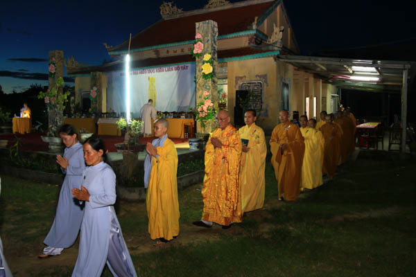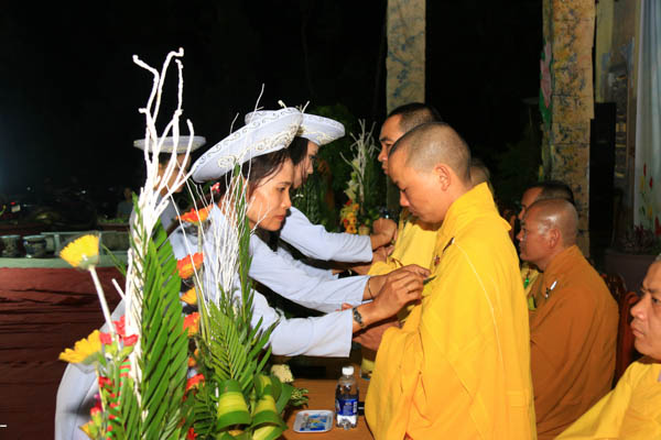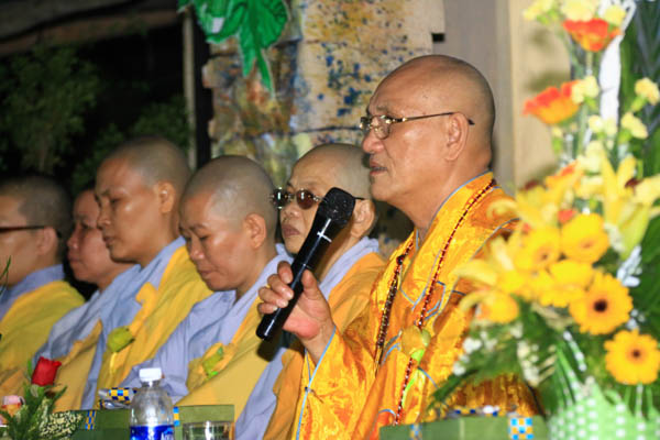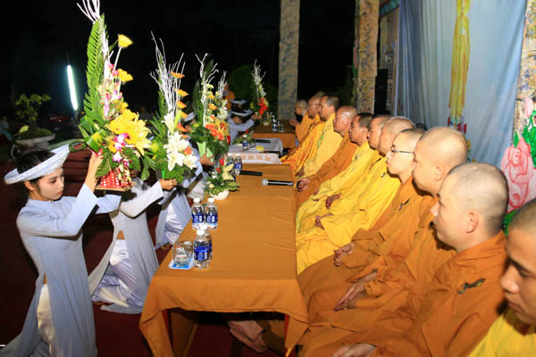 Tối 13/7/Giáp Ngọ, sau buổi trao tặng quà, lễ cài hoa hồng mùa Hiếu hạnh đã diễn ra trang nghiêm và thanh tịnh tại sân chùa Pháp Hoa Sơn. HT. Thích Trí Viên – Trú trì chùa Pháp Hội; ĐĐ. Thích Đạo Lực – Trú trì chùa Tân Thành cùng Chư Đại đức Tăng Ni, đạo hữu Phật tử đã đến tham dự.