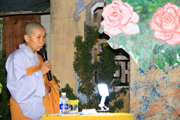 Dù đang bận rộn lo cho việc tặng quà mùa Vu Lan nhưng Sư Cô Thích Nữ Thanh Hoàng vẫn dành thời gian tiếp chuyện chúng tôi. Nhìn dáng người nhỏ nhắn của Sư cô trong chiếc áo nâu sòng, tôi cảm thấy cảm phục. Nơi núi rừng heo hắt, dân cư thưa thớt, để bám trụ và lo toan Phật sự nơi đây phải có tâm nguyện thật lớn lao mới có thể vượt qua được những khó khăn vất vả.