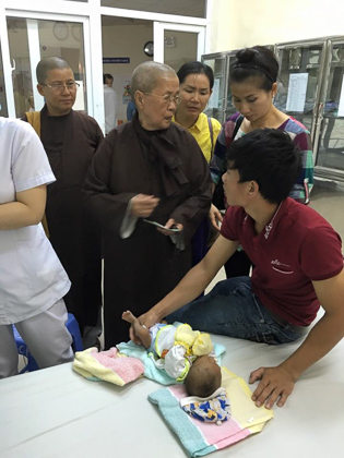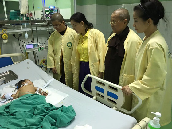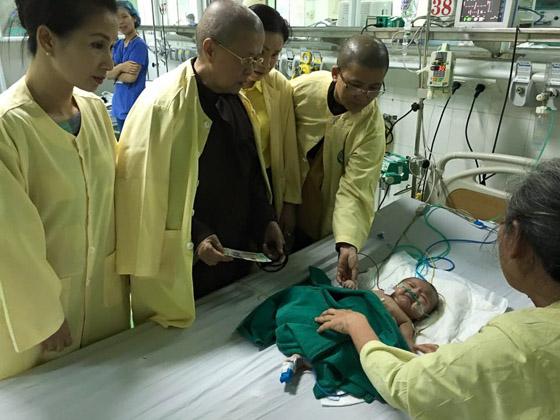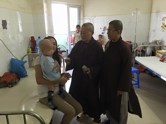 Tiếp sau đó, đoàn đã đến thăm và trao tặng tịnh tài cho các bệnh Nhi có hoàn cảnh gia đình khó khăn đang điều trị tại Bệnh viện Phụ sản Nhi Đà Nẵng.