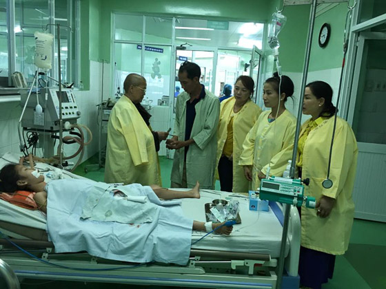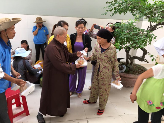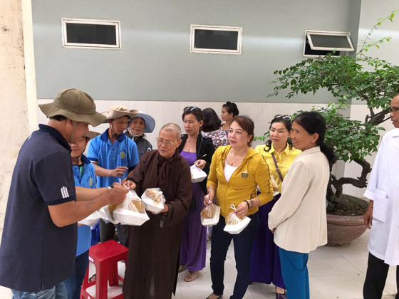NS. Thích Nữ Hạnh Tâm – Trưởng ban kinh tế tài chính BTS GHPGVN Tp Đà Nẵng, Trú trì chùa Phổ Hiền; SC. Thích Nữ Minh Hiền – UV Ban TTTT GHPGVN Tp Đà Nẵng, Tri sự chùa Phổ Hiền cùng các đạo hữu Phật tử đã đến phát 400 suất bún chay và 100 ổ bánh mì cho bệnh nhân tại bệnh viện huyện Điện Bàn, tỉnh Quảng Nam.