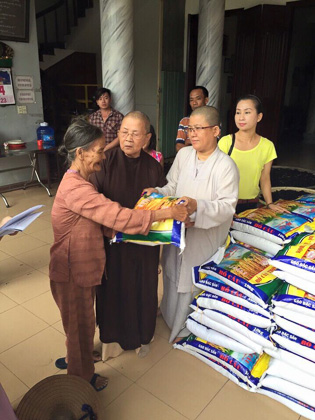 Trước đó vào ngày 06/11/2015 (25/9/Ất Mùi), NS. Thích Nữ Hạnh Tâm cùng Chư Ni, đạo hữu Phật tử chùa Phổ Hiền cũng đã trao tặng 1 tấn gạo cho Hội người mù quận Cẩm Lệ, 170 suất ăn cho các cuh già neo đơn tại Trung tâm bảo trợ xã hội Tp Đà Nẵng, 330 suất bún cho các bệnh nhân đang điều trị tại Trung tâm điều dưỡng bệnh nhân tâm thần Đà Nẵng với tổng giá trị 21 triệu đồng.