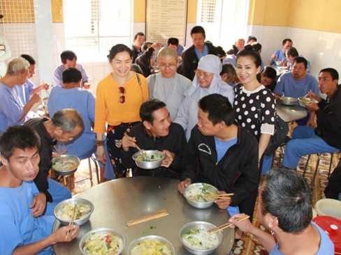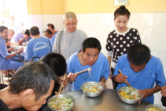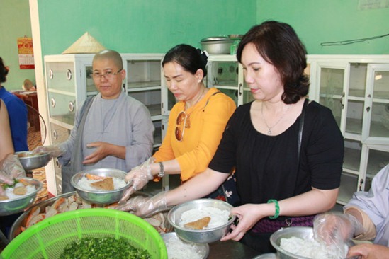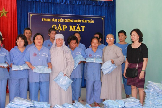 NS. Thích Nữ Hạnh Tâm – Trưởng ban kinh tế tài chính GHPGVN Tp Đà Nẵng, Trú trì chùa Phổ Hiền; SC. Thích Nữ Minh Hiền – UV Ban TTTT GHPGVN Tp Đà Nẵng, Tri sự chùa Phổ Hiền cùng đạo hữu Phật tử và các nhà hảo tâm đã trao tặng 340 bộ áo quần mới và 340 suất ăn cho các bệnh nhân đang điều trị tại trung tâm với tổng trị giá hơn 60 triệu đồng.