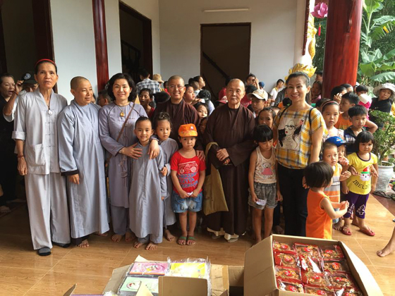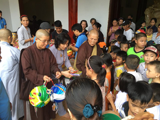 Theo kế hoạch, nhân mùa trung thu 2016, NS. Thích Nữ Hạnh Tâm cùng Chư Ni và đạo hữu Phật tử chùa Phổ Hiền tiếp tục tặng quà trung thu cho trẻ em tại Làng Hoà Bình-Trẻ em cơ nhỡ-Các cháu bị nhiễm chất độc Da cam (200 suất), Thôn Dục Tịnh-Xã Đại Hồng-Huyện Đại Lộc-Tỉnh Quảng Nam (200 suất).